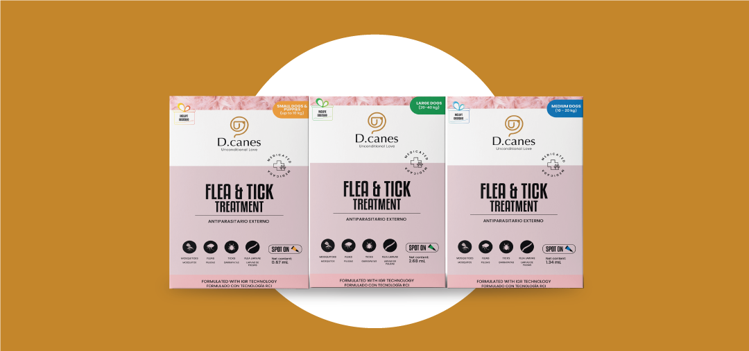 La fórmula de doble acción de D.canes ANTIPULGAS SPOT ON elimina pulgas, garrapatas y ácaros. Su tecnología RCI (Regulador del Crecimiento de Insectos) detiene la incubación de huevos de pulgas y el desarrollo de larvas en el hogar.